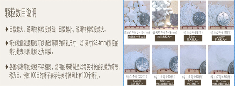 我司生产石英砂滤料按尺寸分0.3-0.5mm,0.5-1mm,1-2mm,2-4mm,4-8mm,8-16mm,16-32mm;按目数分为120-200目,80-120目,40-80目,20-40目,10-20目,26-40目,16-26目,8-16目,6-8目,4-6目,2-4目,1-2目;按程度分为普通石英砂,精制石英砂,纯白石英砂,酸洗石英砂。按用途分为喷砂除锈石英砂,保温砂浆石英砂,猫砂专用石英砂,环氧地坪石英砂,球场草坪石英砂,真石漆用石英砂,透水砖面石英砂,地坪罩面石英砂,水处理用,石油压裂,熔融高纯,玻璃夹管,板材专用,陶瓷铸造,化玻低铁,瓷砖胶用,填缝剂用,造景观赏,耐火建材,鱼缸家用,酒店烟灰缸用,儿童乐园用石英砂等。